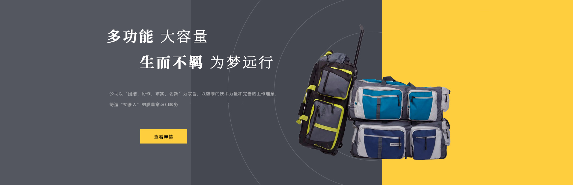 本公司是一家集設(shè)計,制造,加工,貿(mào)易為一體的專業(yè)箱包生產(chǎn)出口企業(yè)。已有20多年箱包生產(chǎn)經(jīng)驗(yàn)。公司廠區(qū)位于中國浙江省海寧市鹽官工業(yè)園區(qū),占地15000平方米,建筑面積10000平方米,員工150人,年生產(chǎn)能力260萬只(套)。 公司以尼龍,滌淪,牛津布,P...